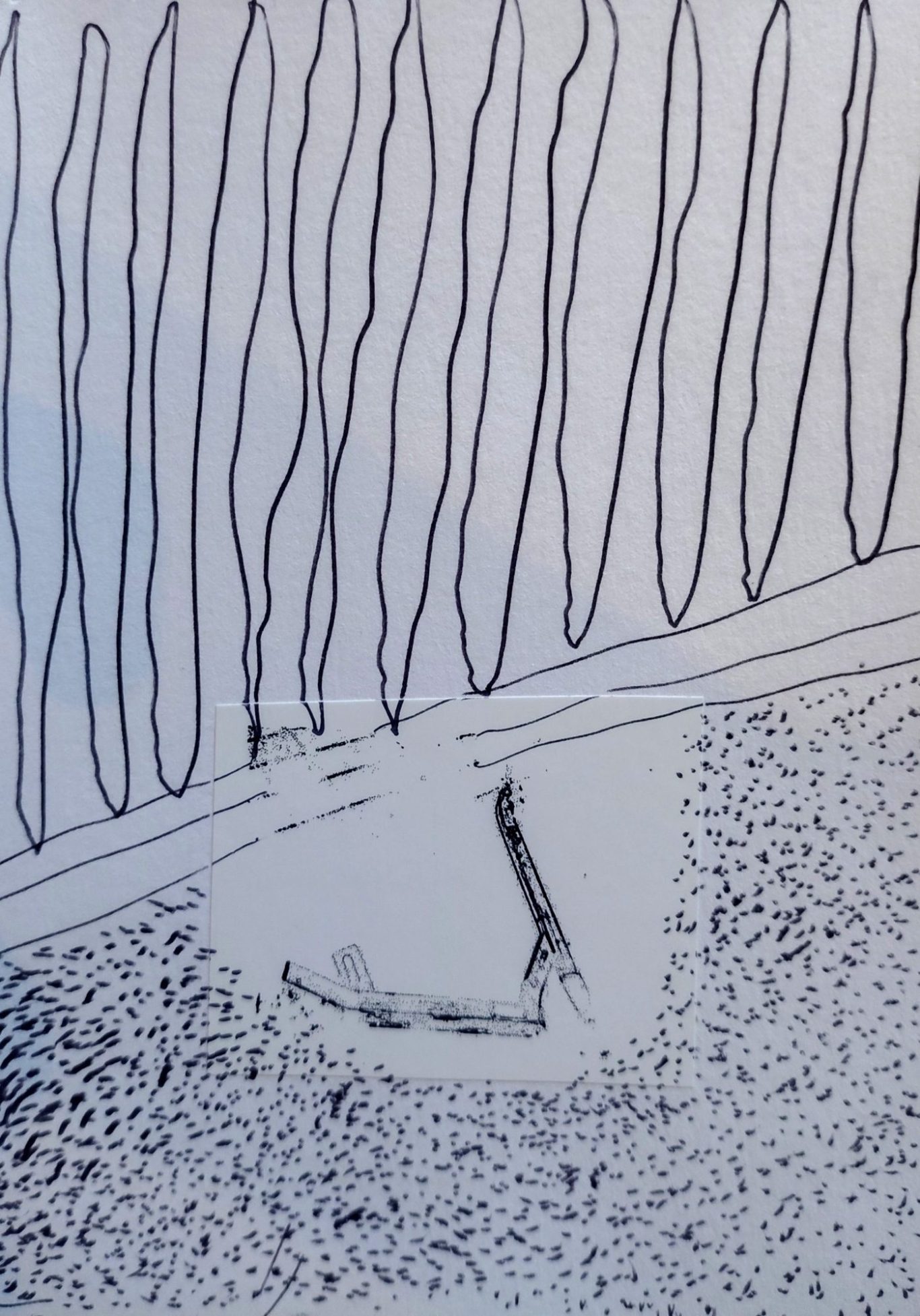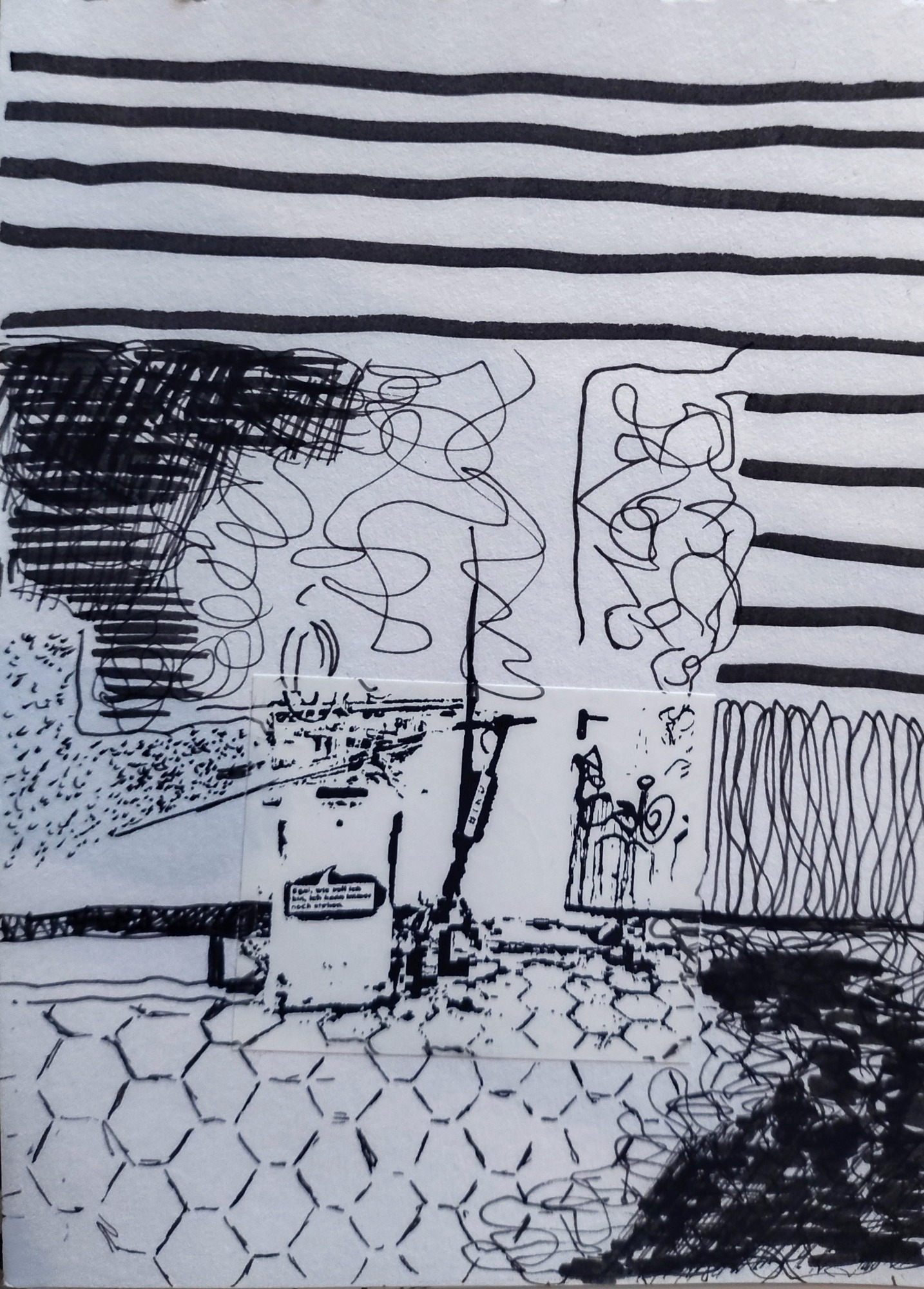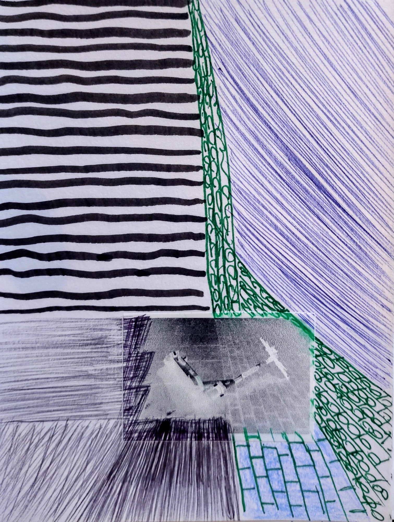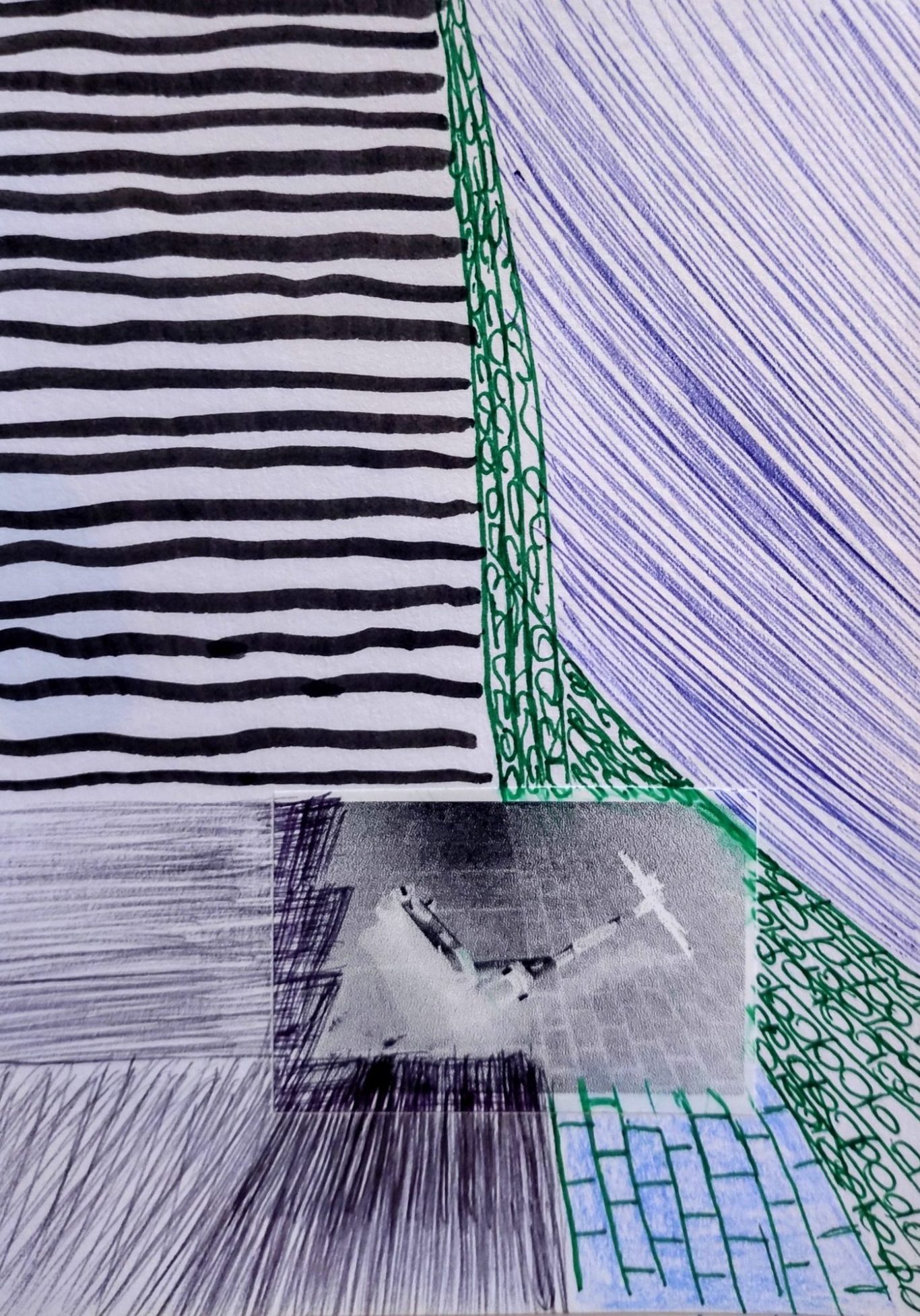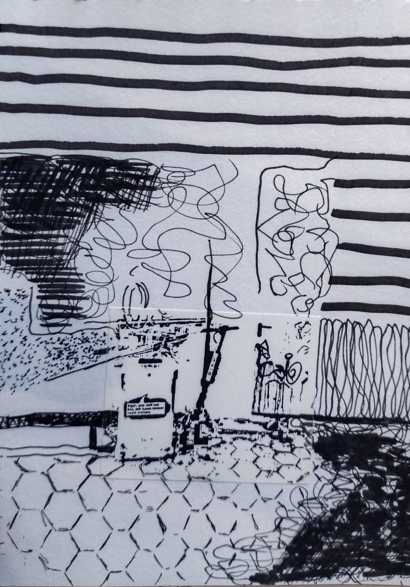 Untitled, 2025, collage, fineliner on paper, 10 x 15 cm