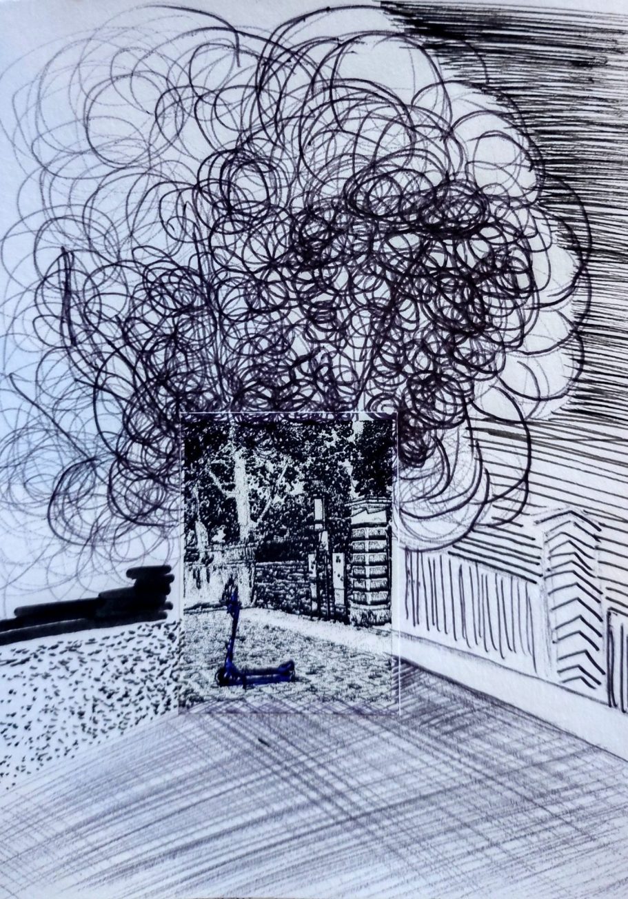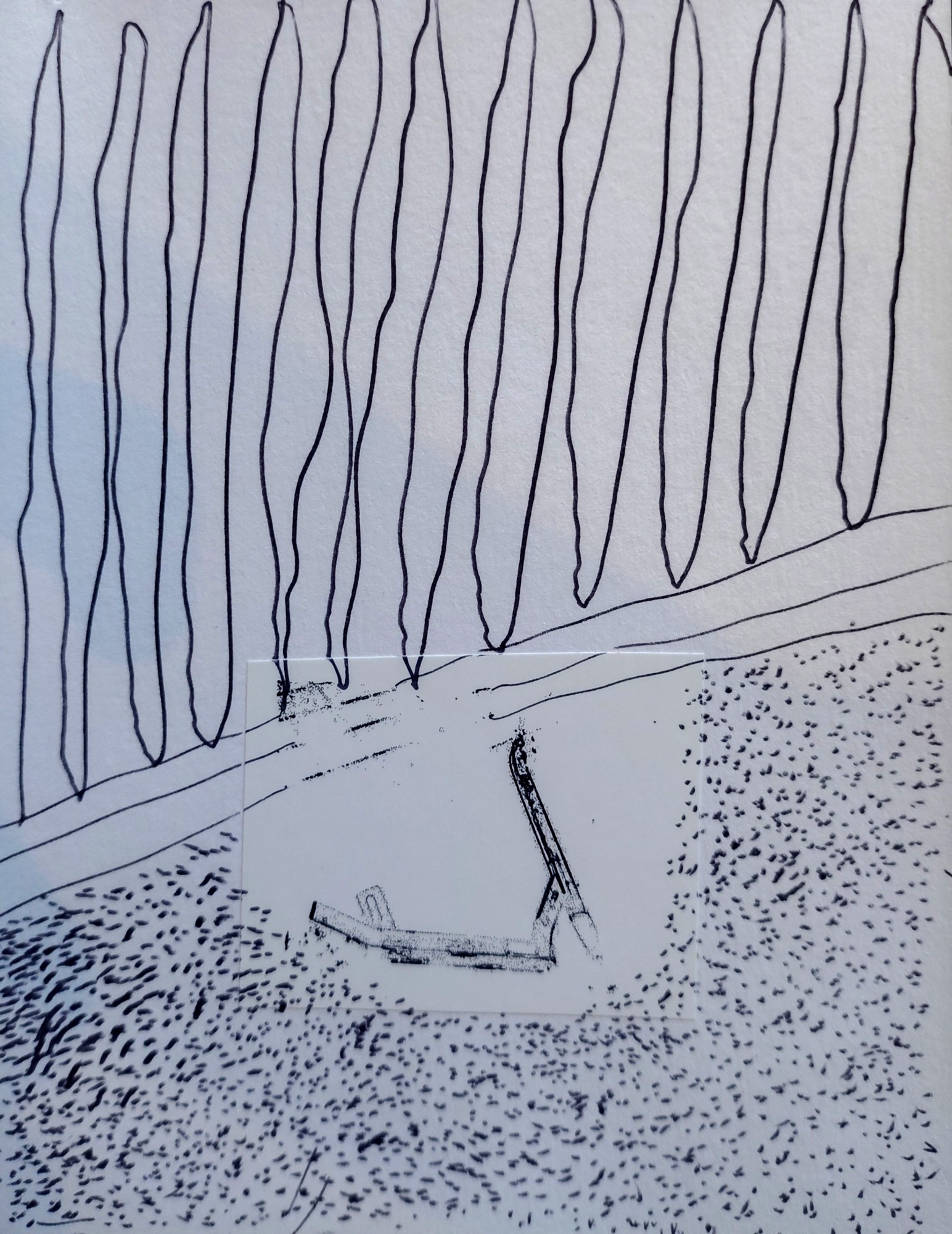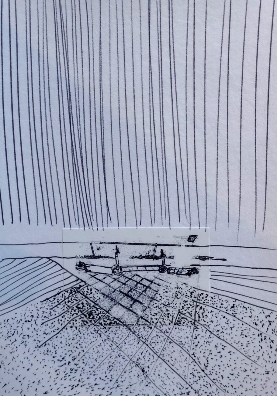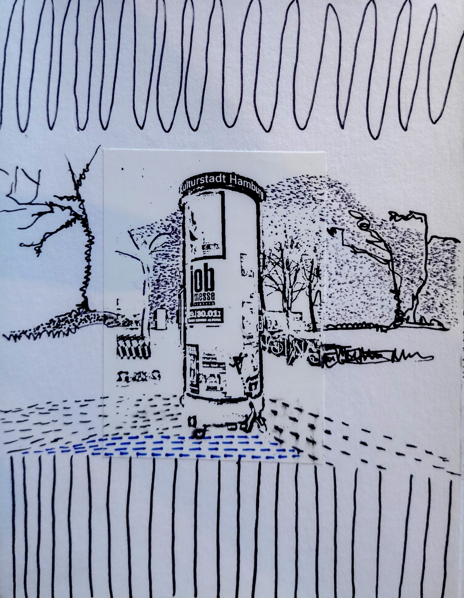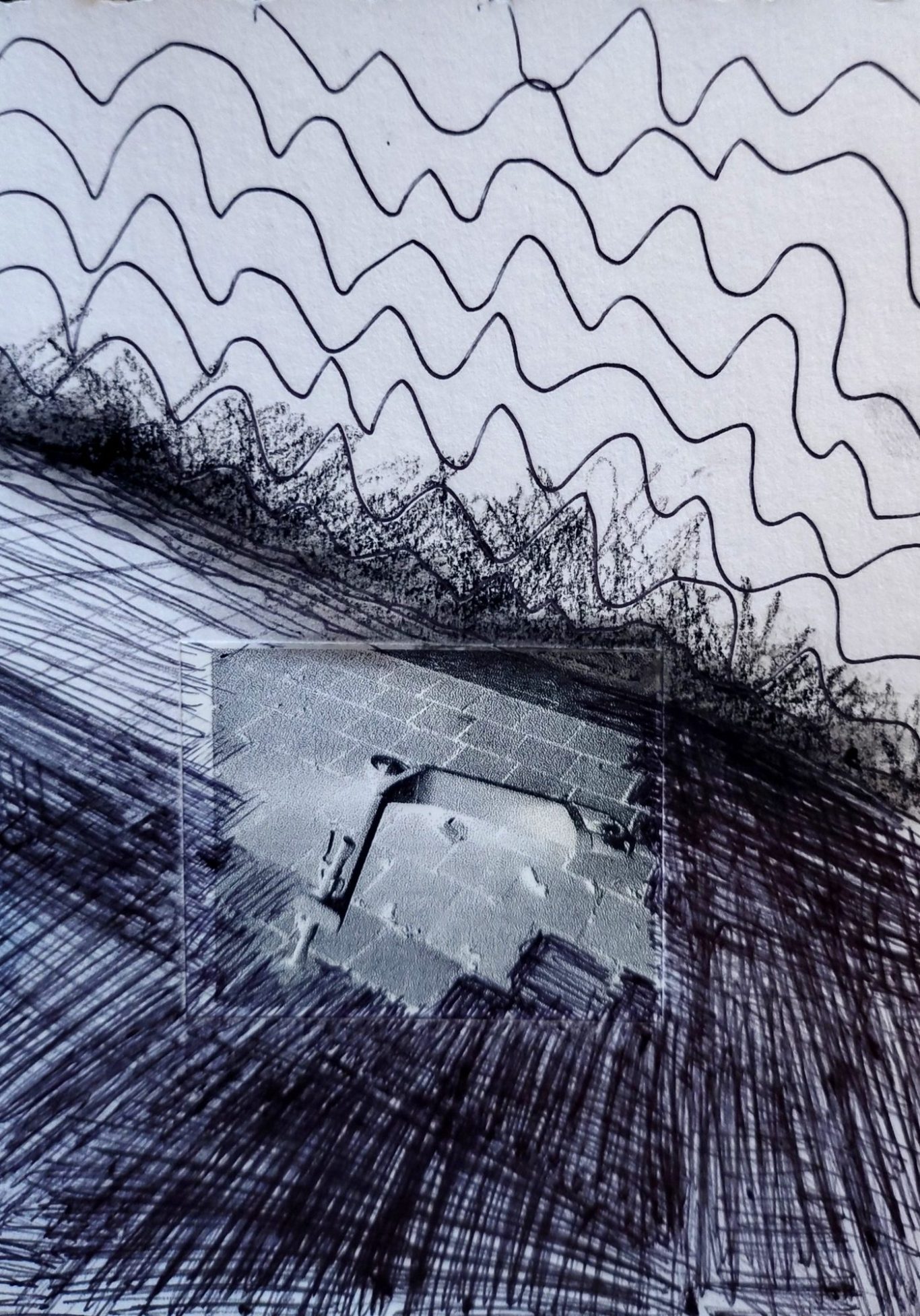 Untitled, 2025, collage, fineliner on paper, 10 x 15 cm