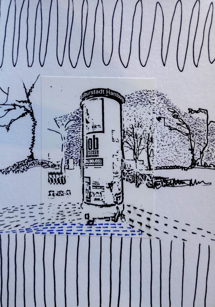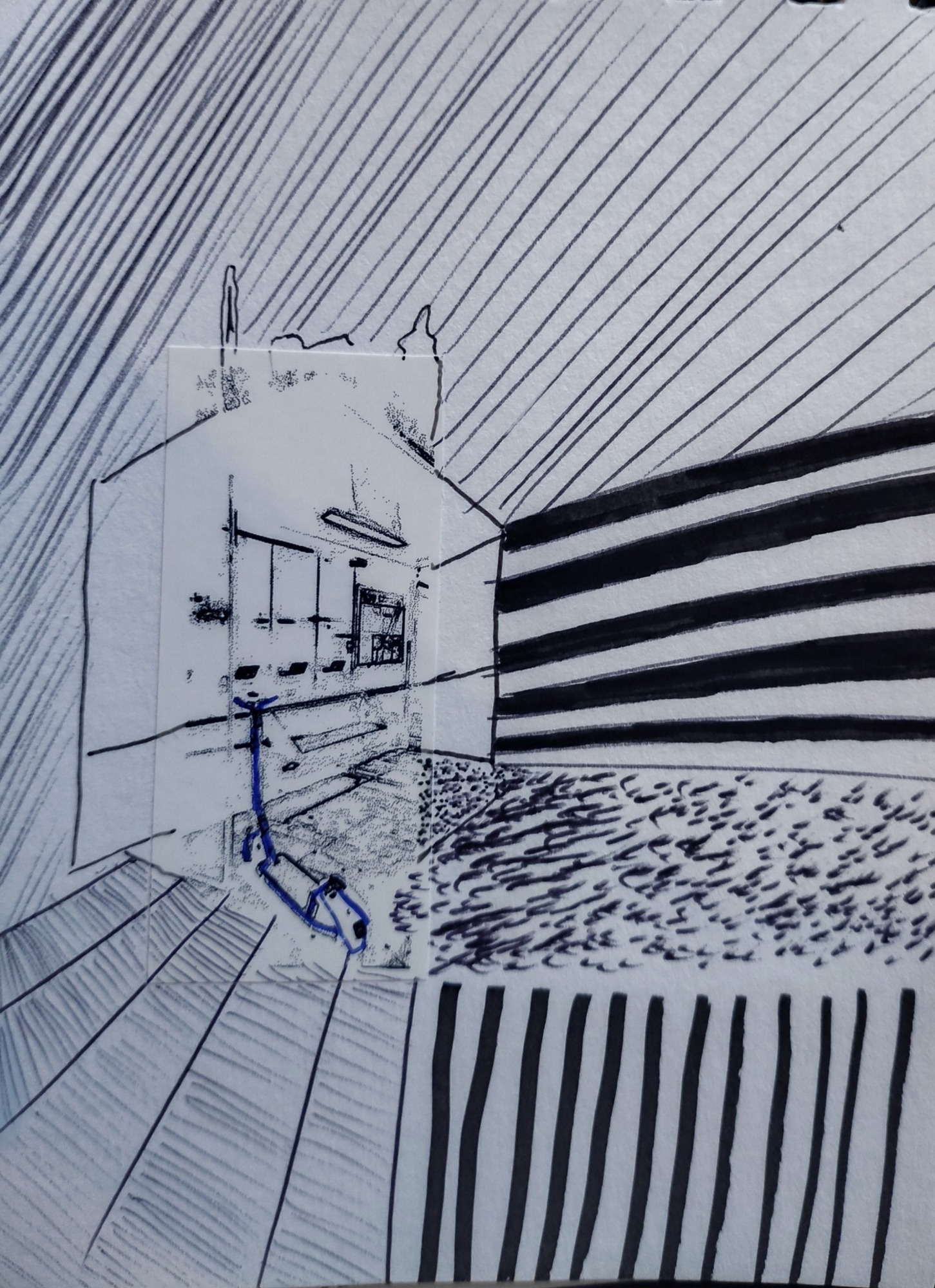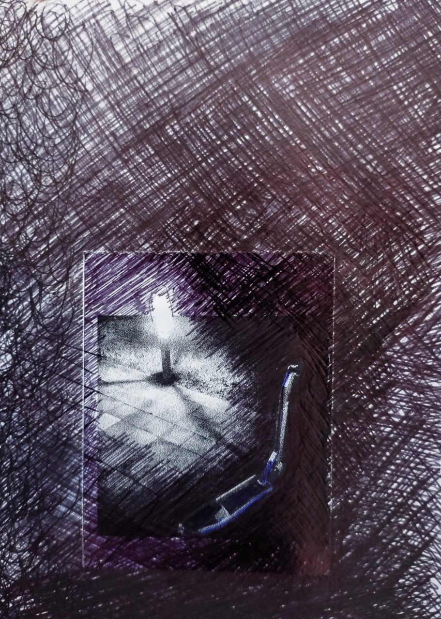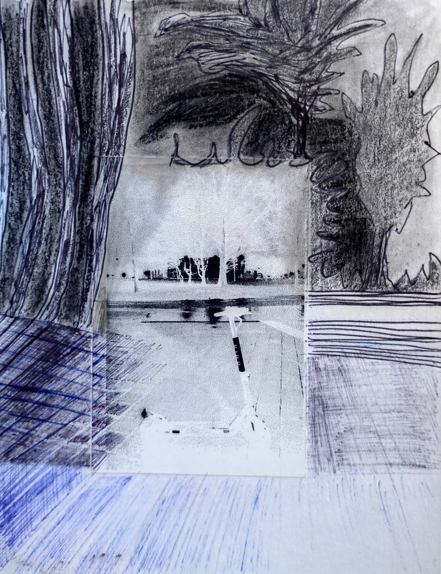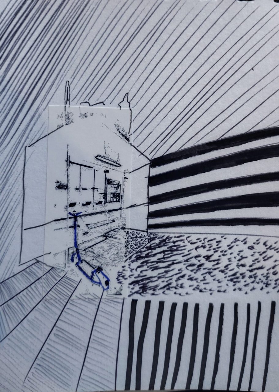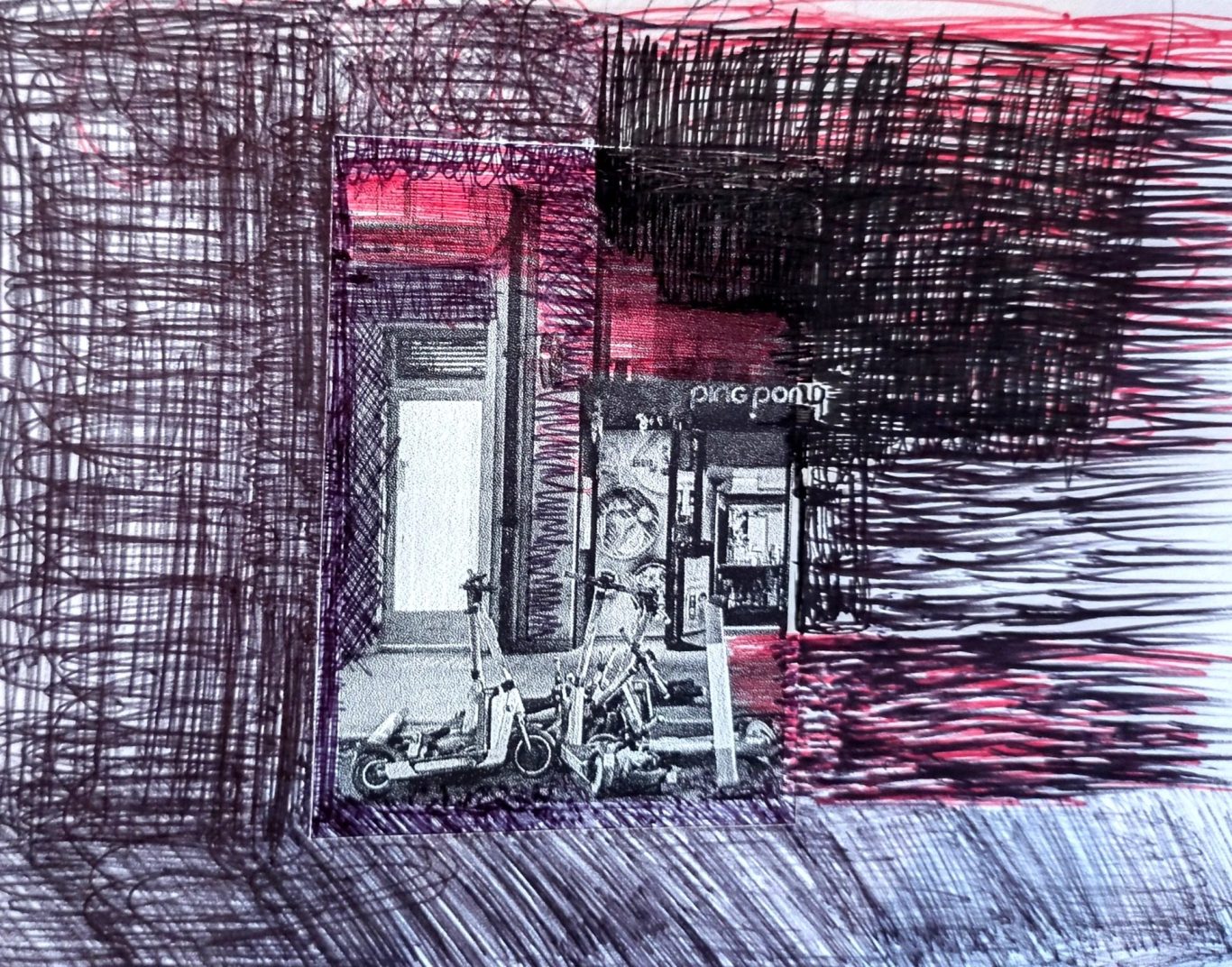 Untitled, 2025, collage, fineliner on paper, 10 x 15 cm