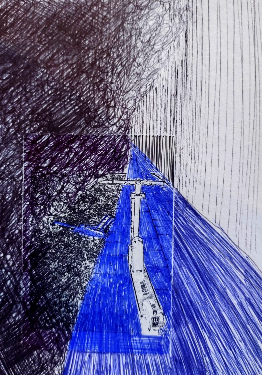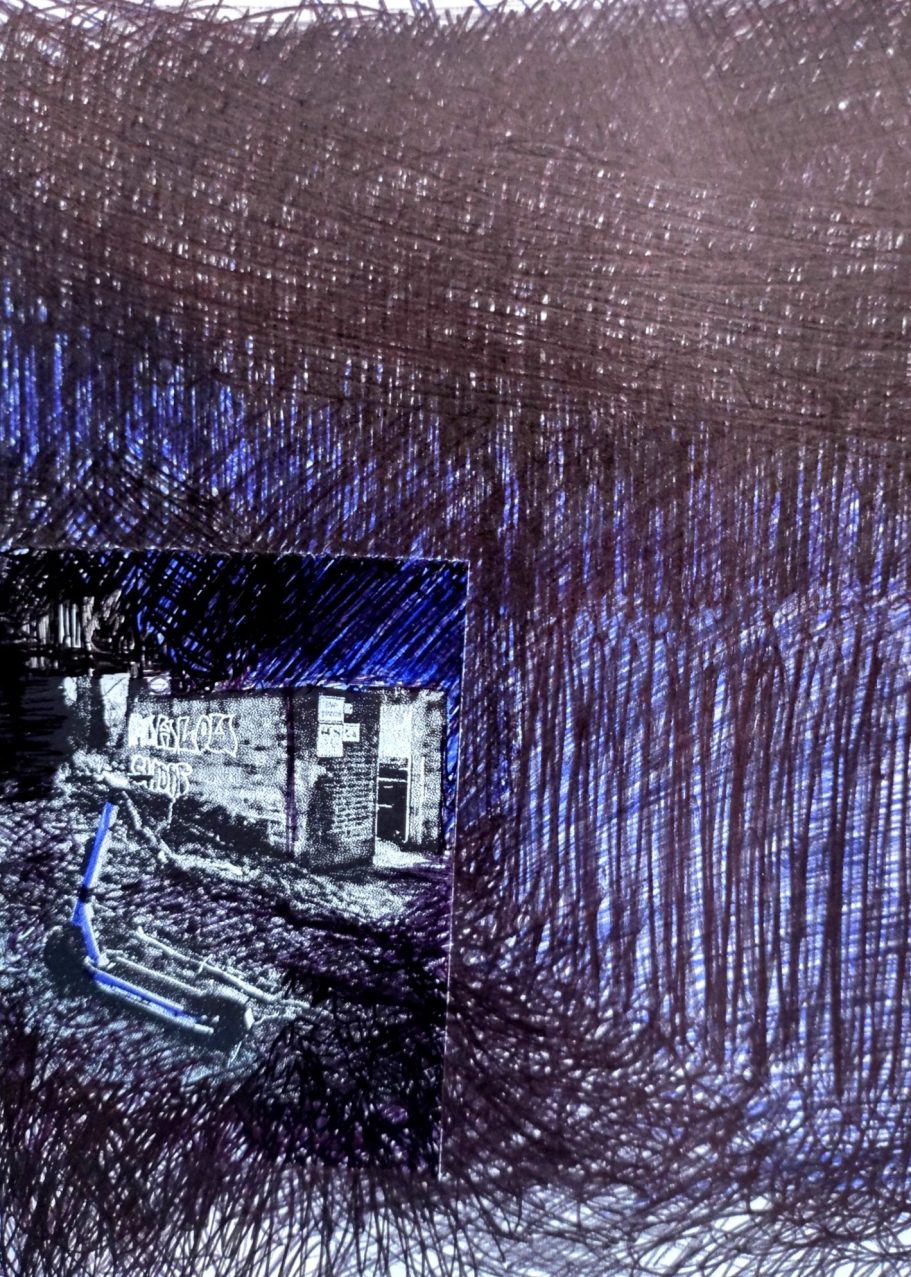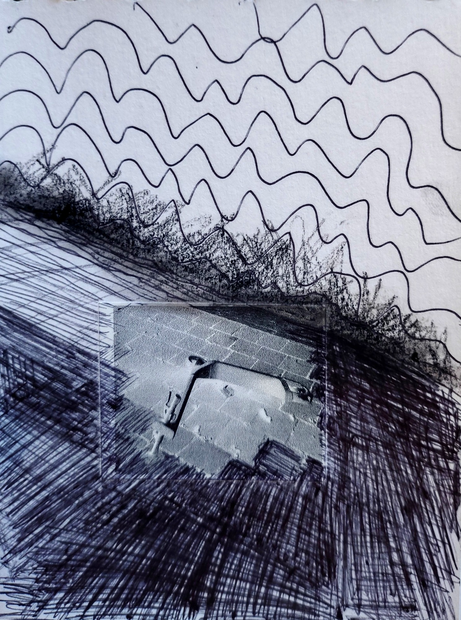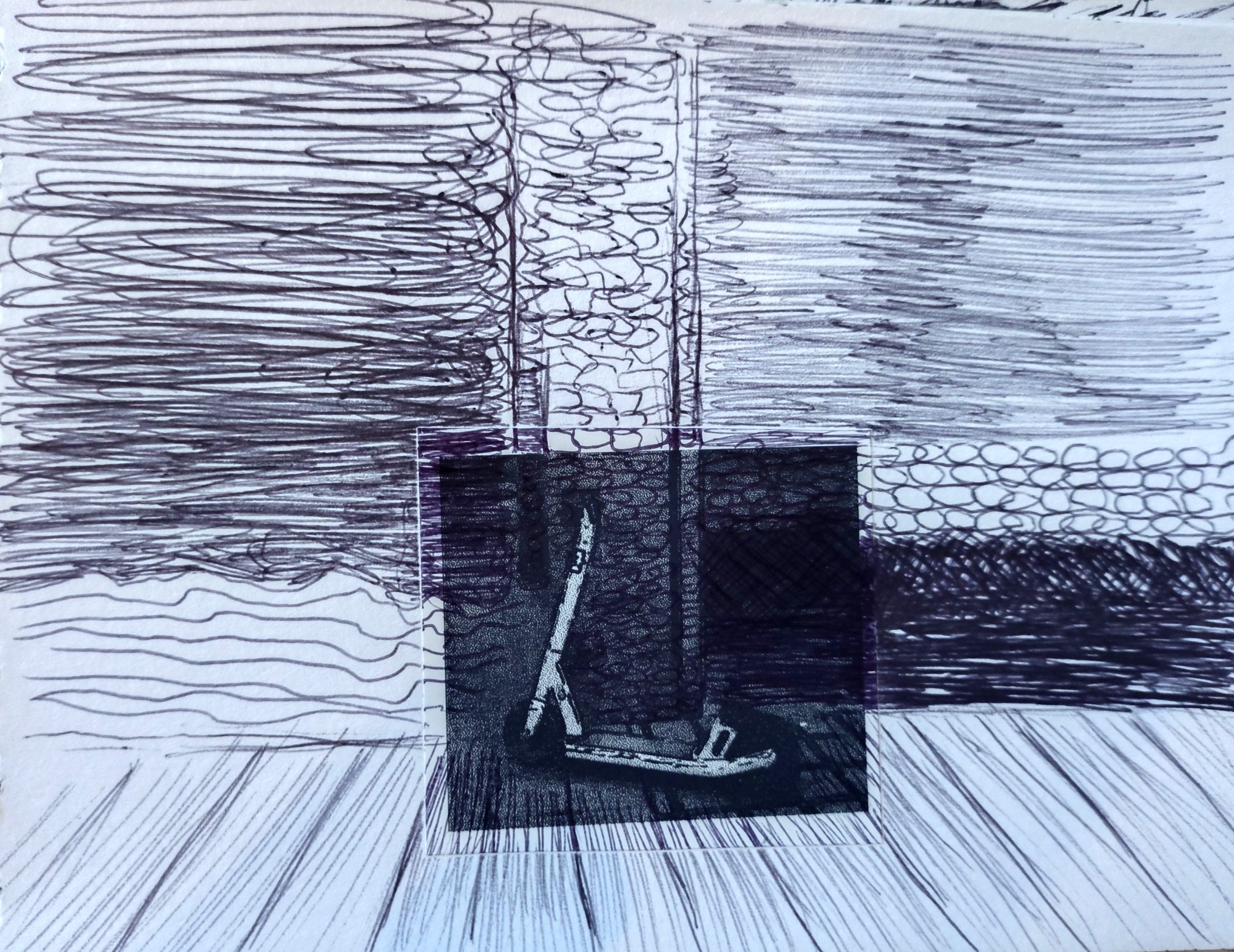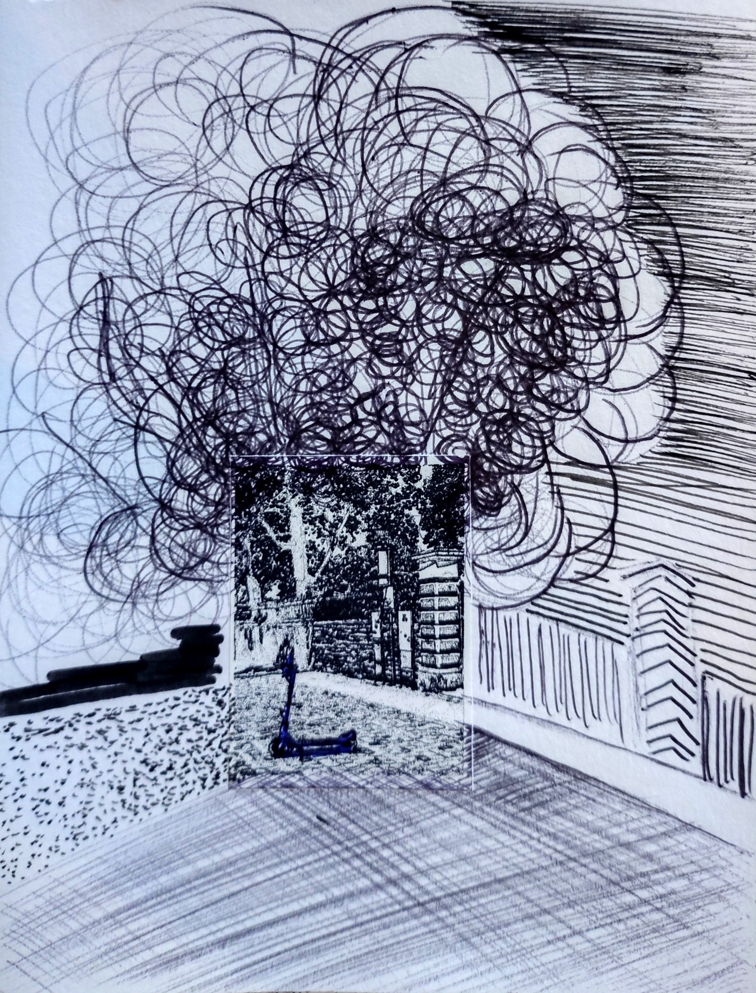 Untitled, 2025, collage, fineliner on paper, 10 x 15 cm