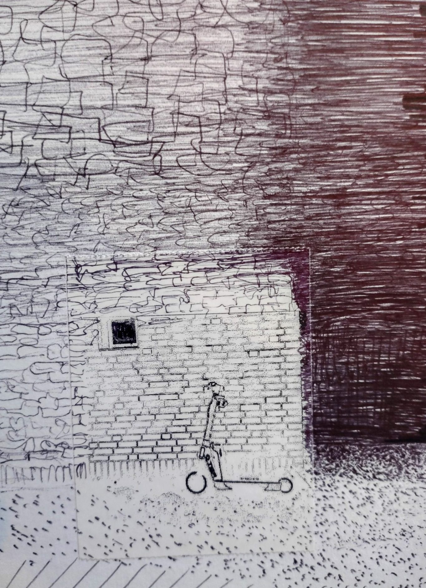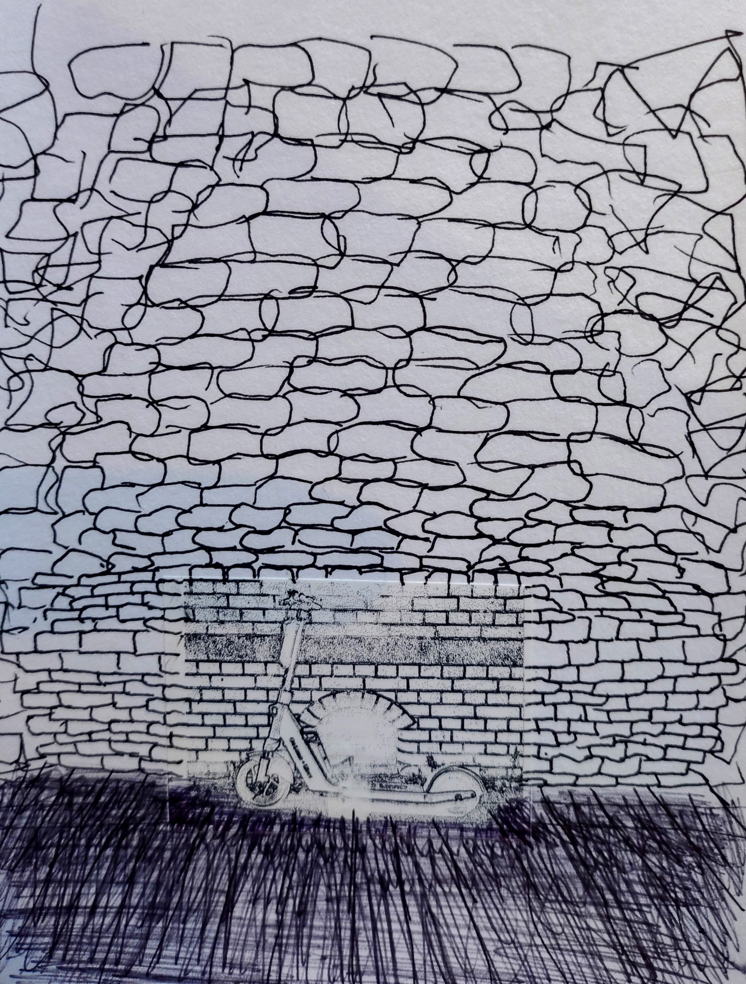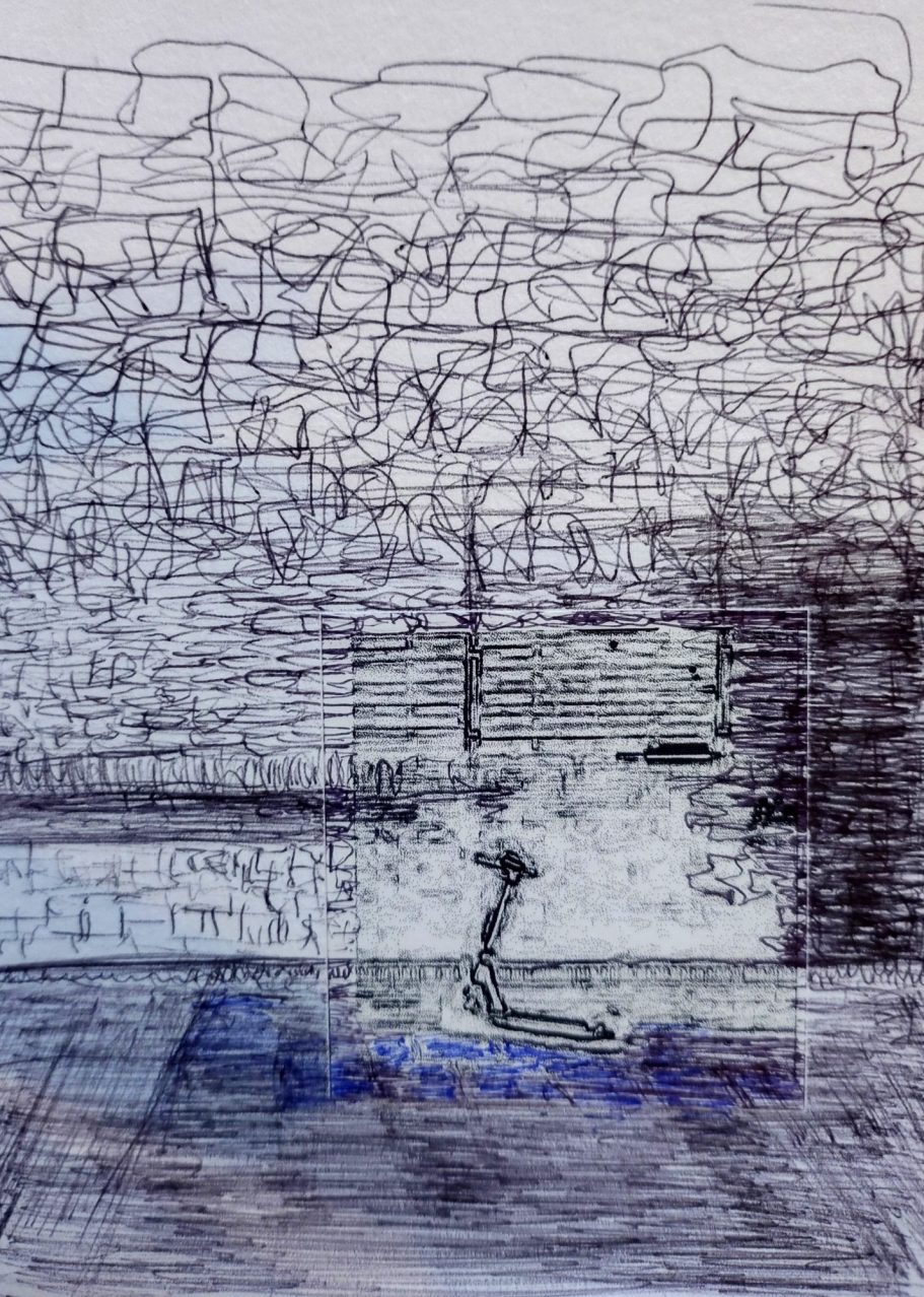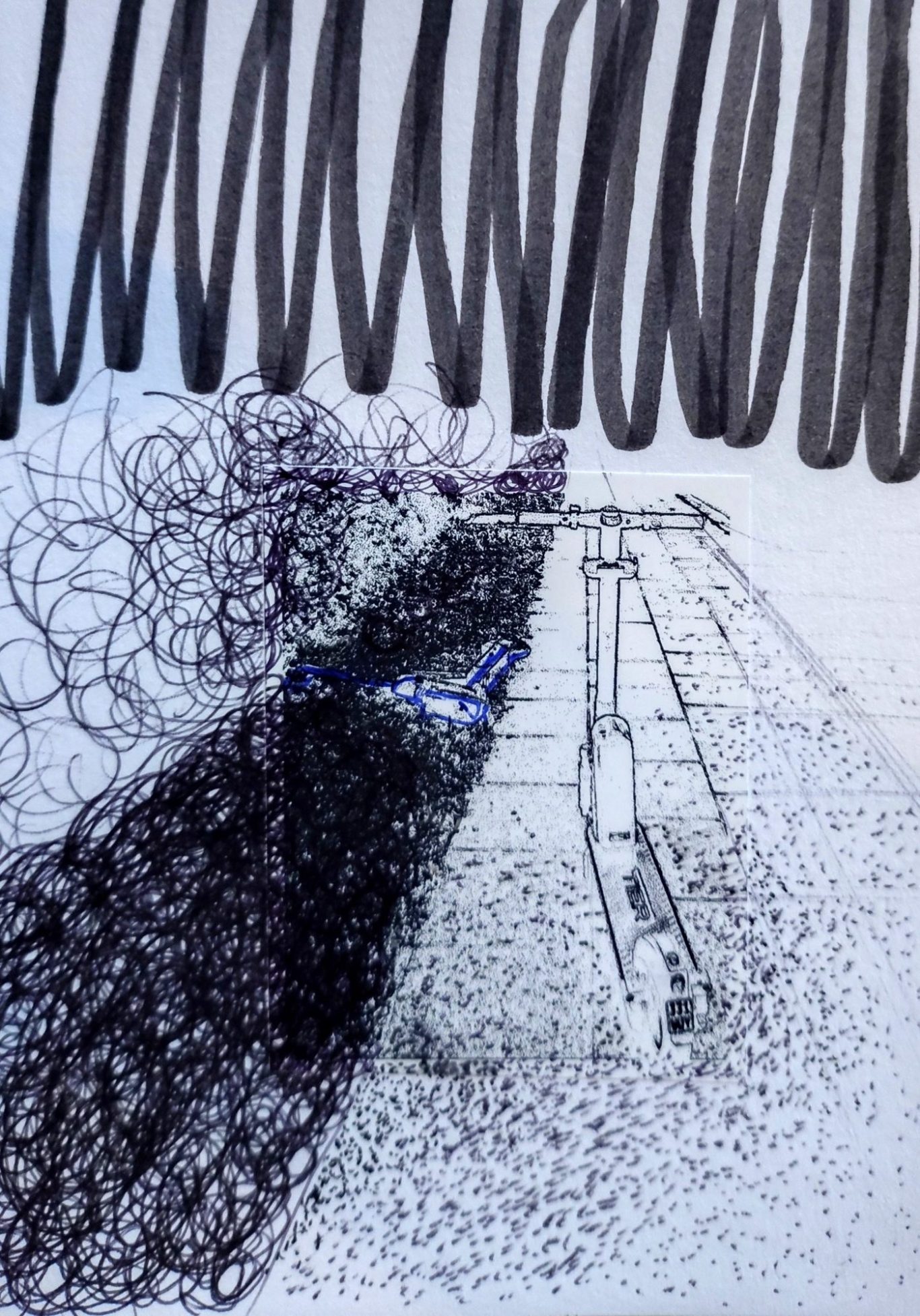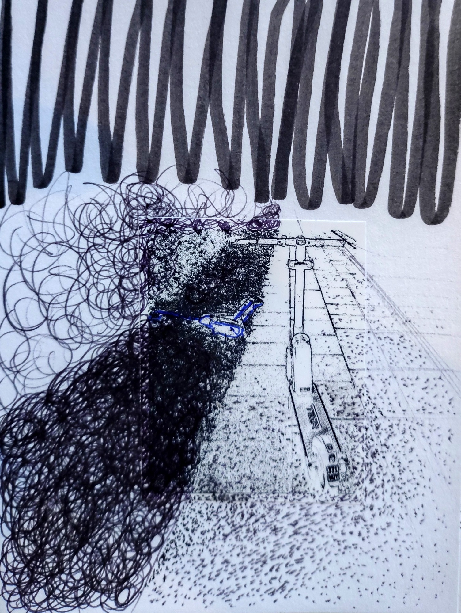 Untitled, 2025, collage, fineliner on paper, 10 x 15 cm