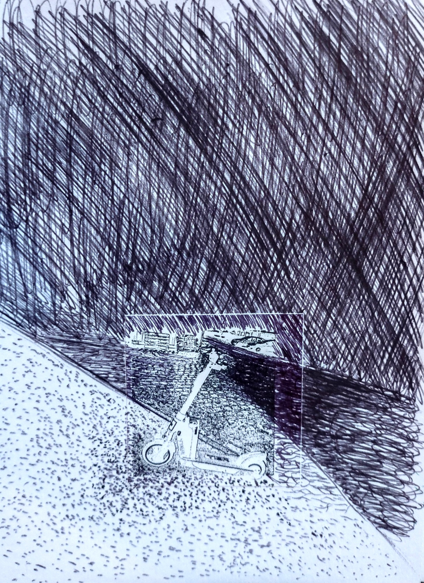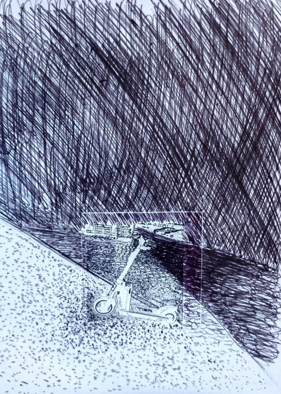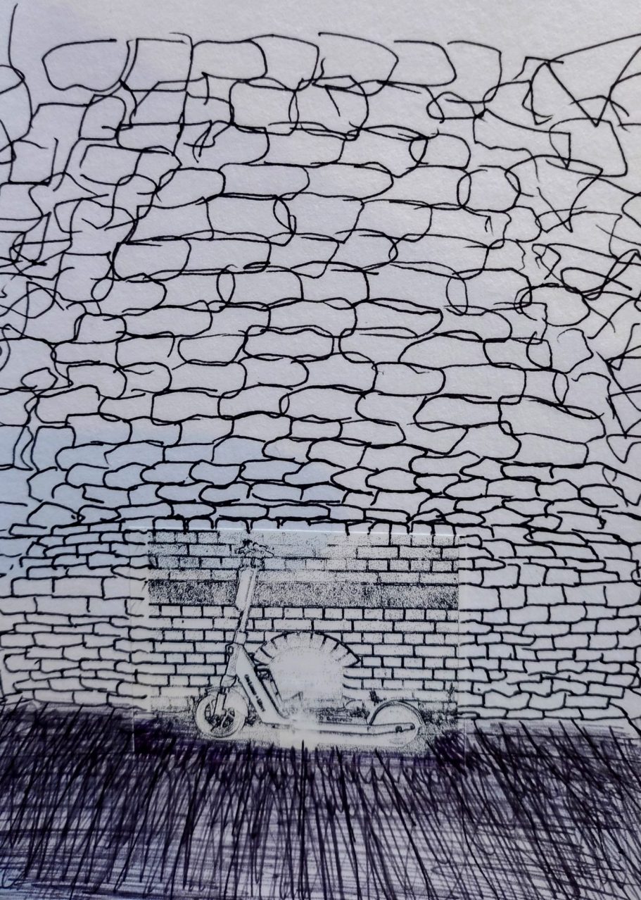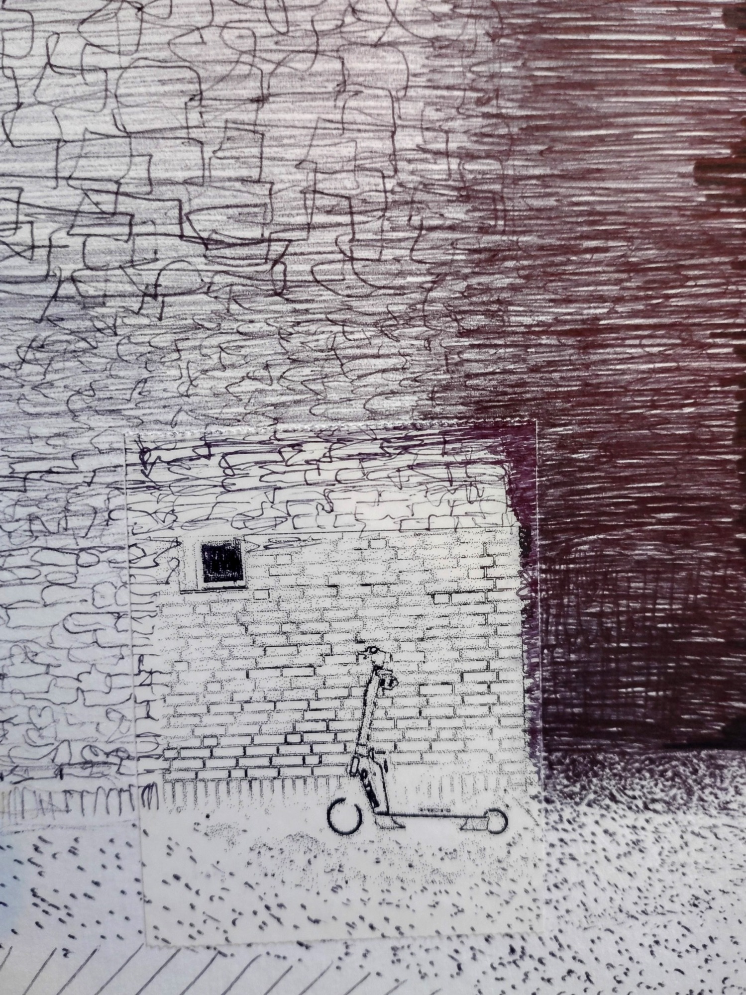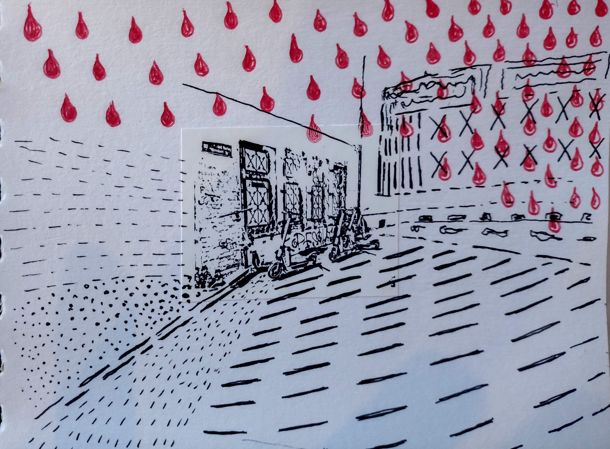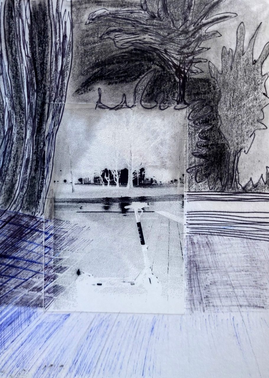 Untitled, 2025, collage, fineliner on paper, 10 x 15 cm