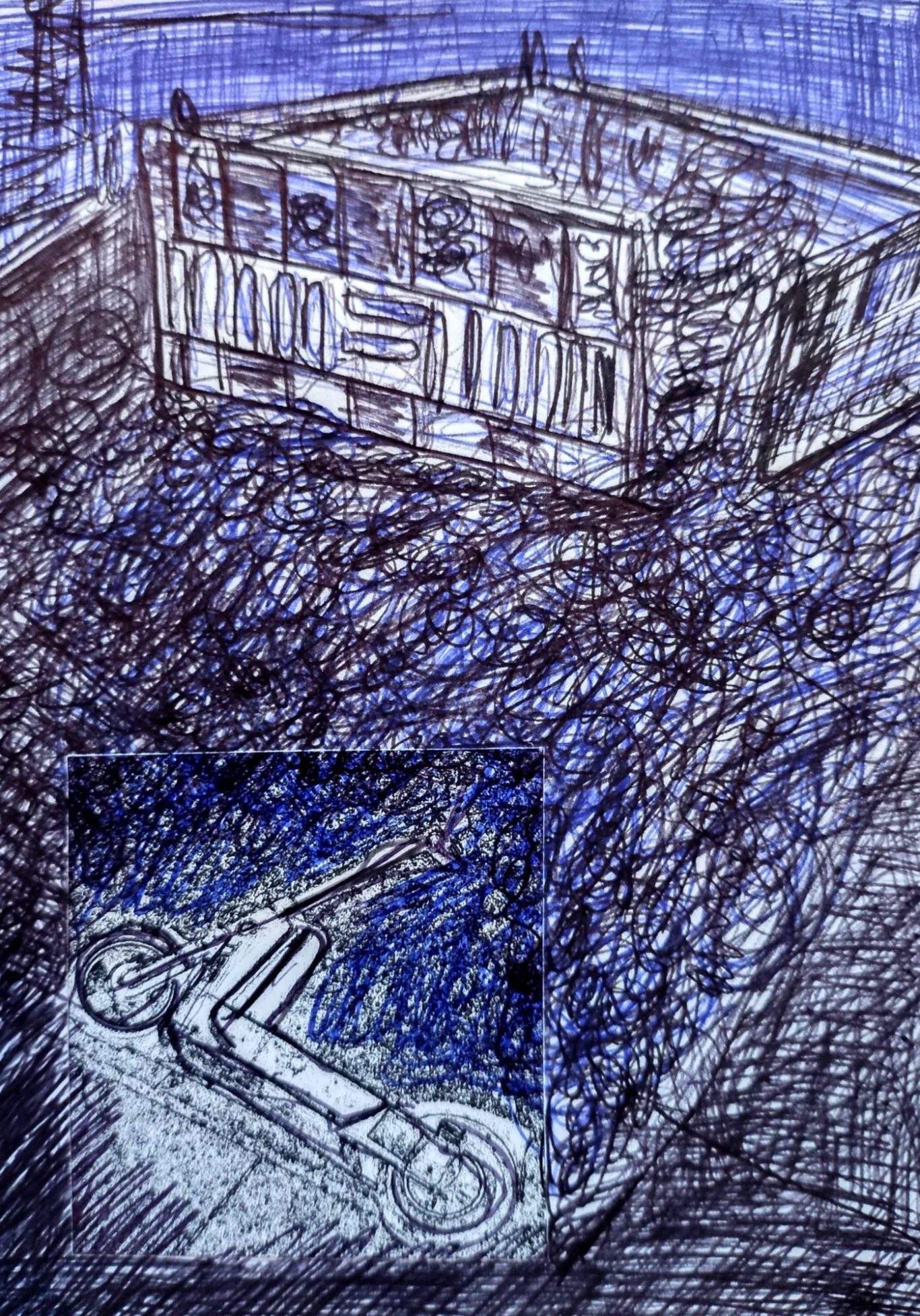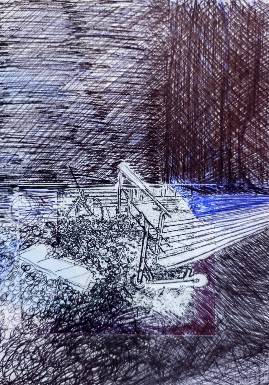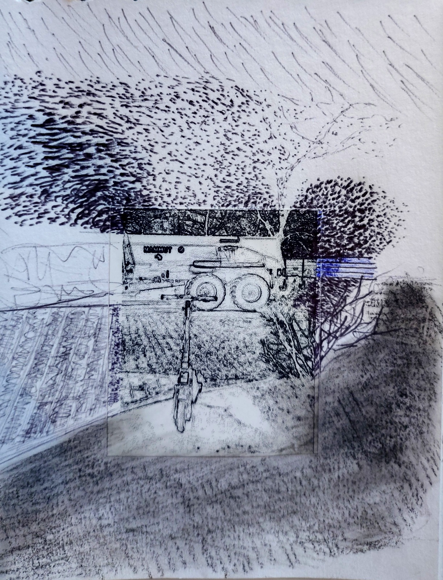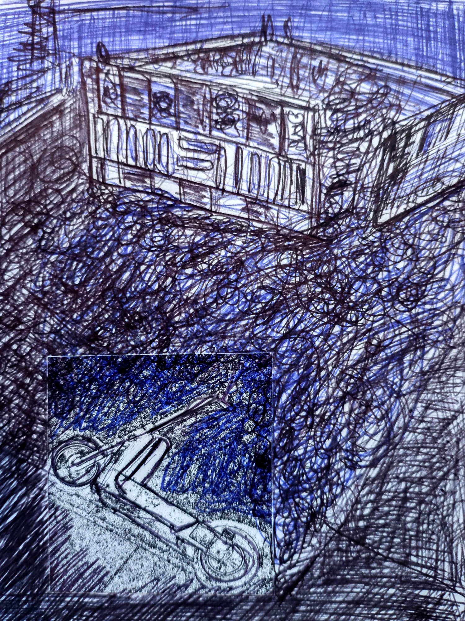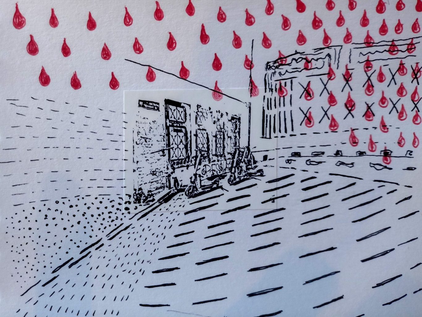 Untitled, 2025, collage, fineliner on paper, 10 x 15 cm
