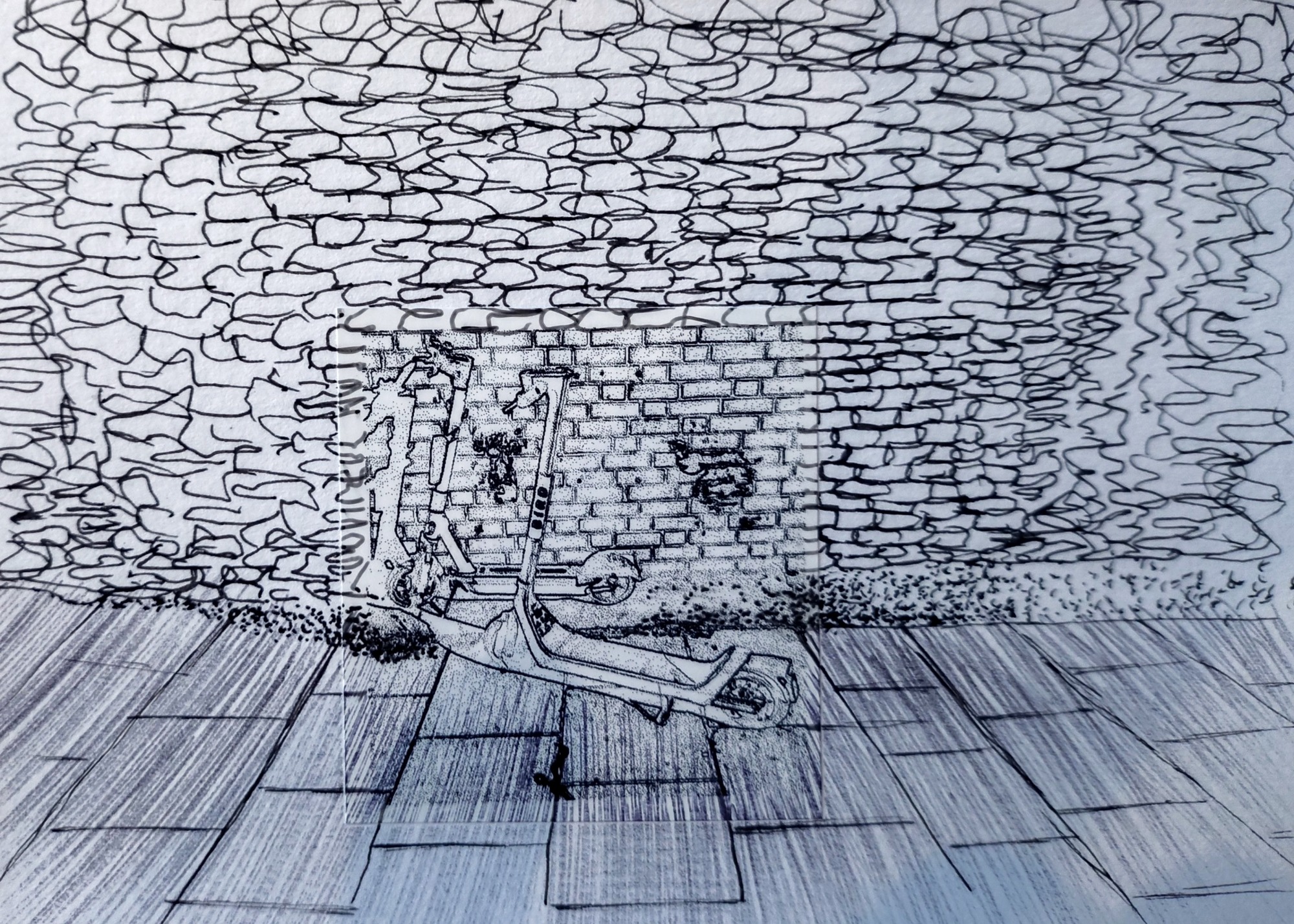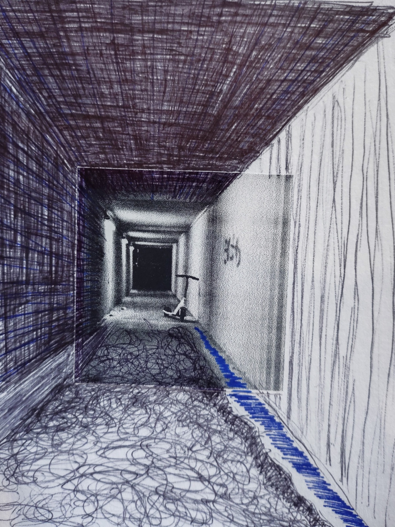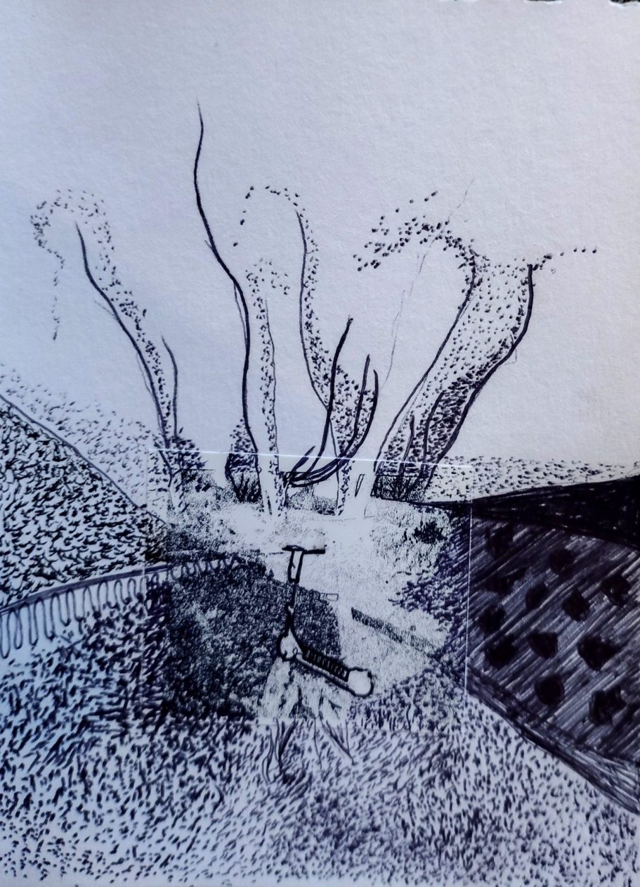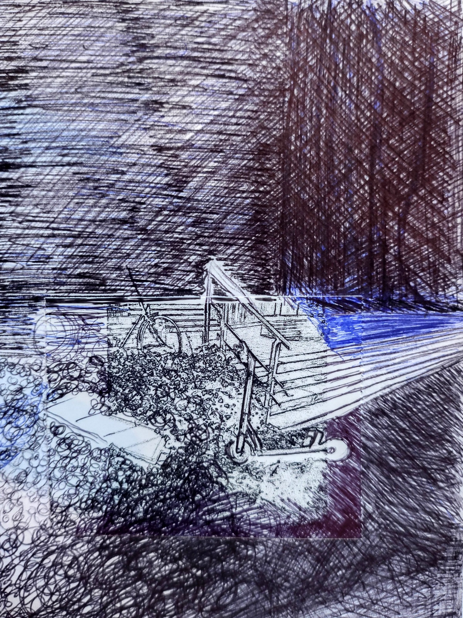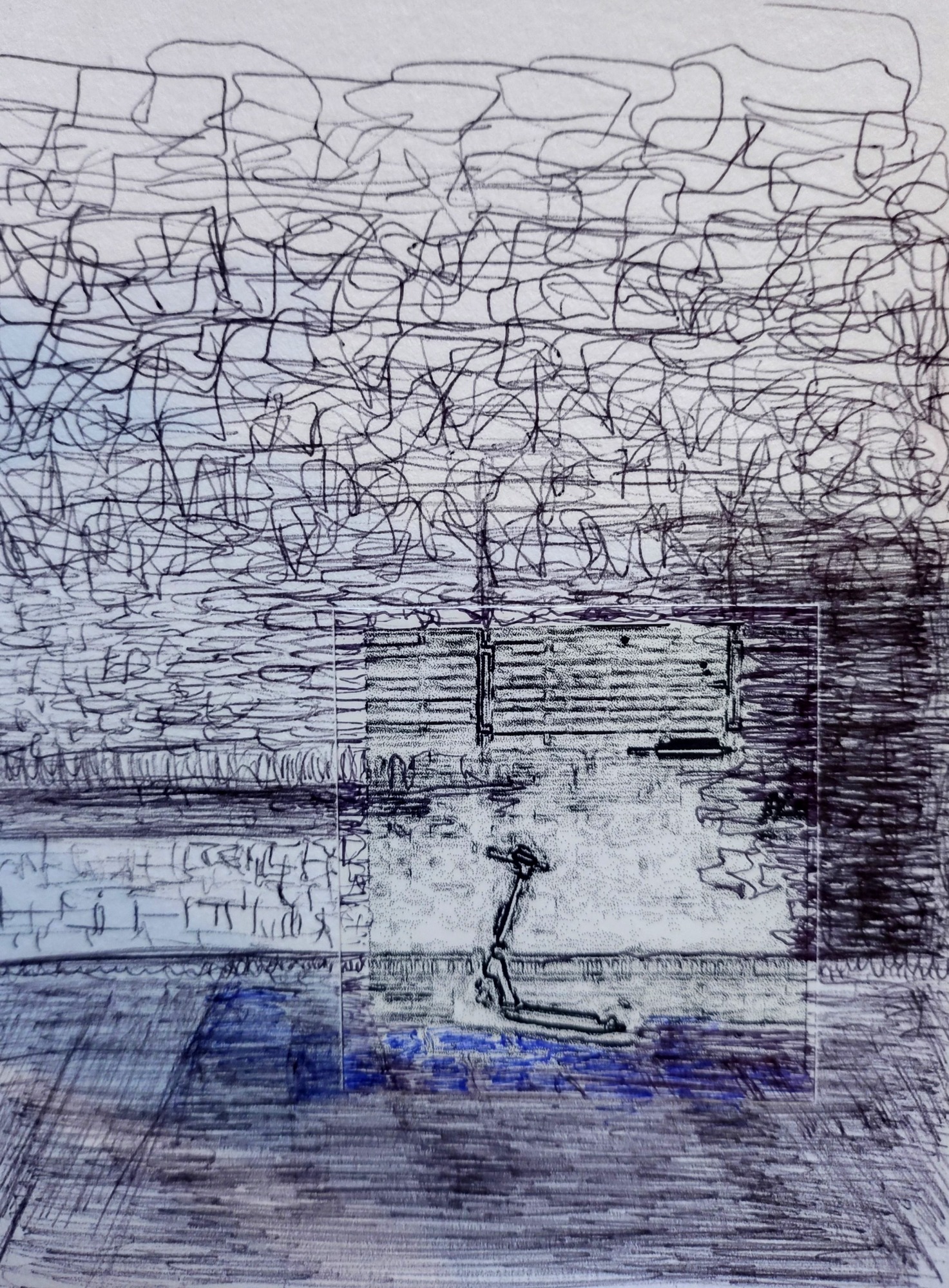 Untitled, 2025, collage, fineliner on paper, 10 x 15 cm